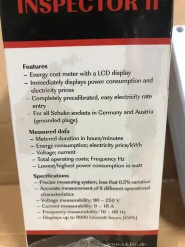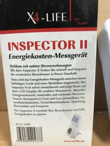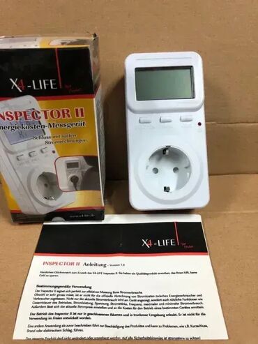 Pokupiti na licu mestaAKCIJA 0835 Merač potrošnje struje X4-LIFE INSPECTOR II; Odmah prikaz potrošnje el. energije; Jednostavan unos cene struje i prikaz potrošnje u novcu ili kWh; Merenje 8 strujnih karakteristika: Napon, Jačina, Snaga, Preopterećenje (najniža i najviša snaga u vatima). . . Preciznost do 0,5%; Model Art. 12400; Made in Germany;