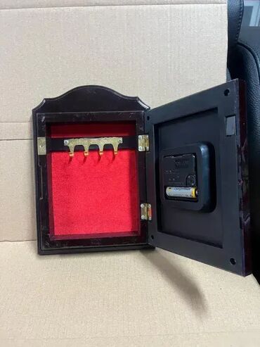 Pokupiti na licu mestaAKCIJA #1718 Zidni sat sa ormarićem za ključeve; Precizan satni mehanizam; Dimenzije: HxŠxD=26,5x19x7cm; Potpuno NOVO, neotpakovano!