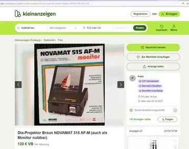 Pokupiti na licu mesta*** AKCIJA *** #2089 Dijaprojektor i Monitor NOVAMAT 150 AFI-M 1 klizna fioka od 36 komada. AUTO FOCUS BRAUN SUPER-PAXON 8/85 mm objektiv MULTI-COATED 85mm F2.8 Izvor svetlosti HALOGENSKA LAMPA 150W 24V **Potpuno NOVO, neotpakovano!** **NOVAMAT - Germany;** Informacije **** _Plaćanje možete izvršiti pouzećem ili uplatom pre slanja na tekući račun.__Uplatom pre slanja izbegavate poštarinu za povrat novca preko kurirske službe.__U slučaju da ste iz bilo kog razloga nezadovoljni proizvodom možete ga vratiti u roku od 15 dana i novac ćete dobiti nazad.__Rizik i troškovi slanja idu na teret kupca (kod prijema i kod povrata proizvoda)._****