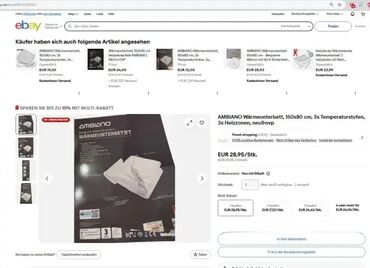 O trošku kupcaPokupiti na licu mesta*** AKCIJA *** #2935 Ćebe - prekrivač sa elektro grejanjem; Sa 2 različite zone grejanja; **Potpuno NOVO, neotpakovano!** **AMBIANO - Germany;** _Opis: Grejano ćebe sa 2 različite zone grejanja: gornji deo tela i donji deo tela1 podešavanje temperature za celo teloOdvojivi daljinski upravljač sa dugmetom UKLJUČENO/ISKLJUČENO i dugmetom za izbor temperaturePlava indikatorska svetla za svaki nivo grejanjaPogodno za mašinsko pranje na 30° C (nežni ili delikatni ciklus)Uključuje 4 elastične trake za pričvršćivanje ćebeta za dušekDonja zona označena tamnosivom bojomSpoljašnji materijal: netkano platno (100% poliester)_ Informacije **** _Plaćanje možete izvršiti pouzećem ili uplatom pre slanja na tekući račun.__Uplatom pre slanja izbegavate poštarinu za povrat novca preko kurirske službe.__U slučaju da ste iz bilo kog razloga nezadovoljni proizvodom možete ga vratiti u roku od 15 dana i novac ćete dobiti nazad.__Rizik i troškovi slanja idu na teret kupca (kod prijema i kod povrata proizvoda)._****