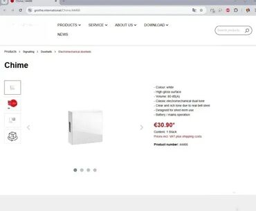Drugo*** AKCIJA *** #2967 Kvalitetno gong zvono za ulazna vrata - GROTHE Germany; Model: Gong 465A Bw/w; **Potpuno NOVO, neotpakovano!** **GROTHE - Made in Germany;** OpisKlasični Grothe dvobojni gong sa zvučnim pločama od pravog čelika pouzdano obezbeđuje jasan i bogt ton prilikom signalizacije. Konvencionalna tehnologija najvišeg kvaliteta i maksimalne izdržljivosti. 8-12V gongovi mogu da rade preko transformatora, mnogi sada imaju dodatni slot za 9V blok baterije kao standard. Karakteristike proizvoda: Klasični dvobojni gongElektromehaničkizvučne ploče od pravog čelika za zvonoKutija: bela, Prednja strana: belaRad sa eksternim transformatorom ili 9V blok baterijomdodatno sa umetnutim odeljkom za blok bateriju 9V (tip ALKALINE)Baterija nije uključenaTehnički podaci: 8 - 12 V~ (4VA)ili baterija 9V= Alkal.6LR61maks. 83 dB(A)Kratko opterećenje mak. 20 s (KB 20 s)