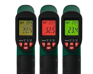 _Notni ton u slučaju razlike između izabrane referentne vrednosti i trenutnog očitavanja, prikaz promene baterije, automatsko isključivanje (cca. 60 sekundi). Ergonomska ručka sa funkcijama mekog rukovanja.__Tehnički detalji - režimi rada: lako merenje / referentni opseg merenja: -50 do +380 ° C - odstupanje ( > 0 ° C / < 0 ° C): ± 1,5 ° C / ± 3 ° C - optika: 12 : 1 (oblast merenja odnosa: opseg merenja) - izbor referentnih nivoa: ±3 /5 ° C: ±3 /5 ° C. _