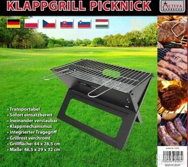 O ovoj stavciKVALITET ZA ODNOSI - Roštilj je mobilan, stabilan i jednostavan za postavljanje. Svi dijelovi se mogu odložiti u roštilj, a kada se sklopi roštilj se može lako transportovati pomoću ručke za nošenje. MOBILNO &SKLOPIV - Roštilj za kampovanje može se postaviti u roku od 1 minute. Raširite roštilj, umetnite posudu za drveni ugalj i postavite hromiranu rešetku za roštilj i završeno! ČIŠĆENJE - KLAPPGRILL se može brzo očistiti zahvaljujući glatkoj površini. Jednostavno isperite roštilj crevom za vodu i ostavite da se osuši na suncu. DIZAJN - Elegantan X oblik čini roštilj privlačnim za oko. KLAPPGRILL idealan je za kampovanje, zabave, odmor i vrt. MOBILNI - Roštilj je prenosiv i može se koristiti bilo kada i bilo gde.