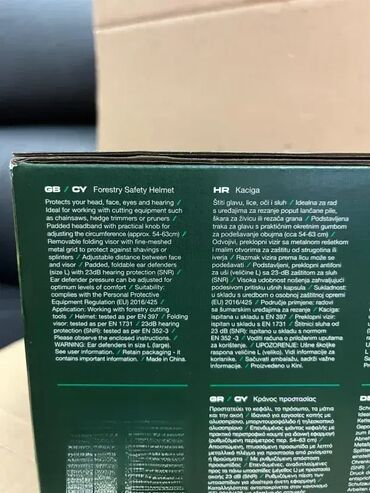 _Idealno za rad sa alatima za sečenje kao što su motorne testere, trimeri za živu ogradu ili makaze za ograde_ _Podstavljeni pojas sa praktičnim rotirajućim dugmetom za podešavanje veličine (približno 54–63 cm)__Uklonjivi, sklopivi vizir sa finom metalnom mrežicom za zaštitu od iverja i opiljaka_ _Podesiva udaljenost između vizira i lica_ _Podstavljeni, sklopivi štitnici za uši (veličina L) sa zaštitom sluha od 23 dB (SNR)__Visoka udobnost nošenja zahvaljujući podesivom pritisku štitnika za uši_ _Specifikacije proizvoda_