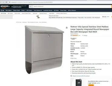 Čvrsto i otporno na vremenske usloveZa veličine pisama do C4 (22,9 x 32,4 cm)Napravljeno od visokokvalitetnog nerđajućeg čelikaIntegrisana kutija za novine sa uklonjivim bočnim panelimaOdeljak koji se može zaključati sa cilindričnom bravom – uključuje 2 ključaZaštitni otvor za poštuProzirni prozor za imeJednostavna montaža – uključuje materijale i uputstvaKarakteristike proizvoda