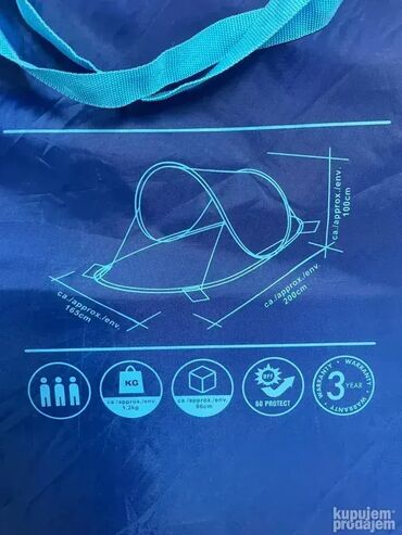 _Opis_ _Idealna zaštita od vetra i sunca za odmor, vrt i piknik_ _Izrađen od izdržljive tkanine sa UV zaštitnim faktorom 60 prema standardu UV801_ _Uključena dodatna oprema,__Uključuje torbu za nošenje, klinove, užad i upute za montažu_