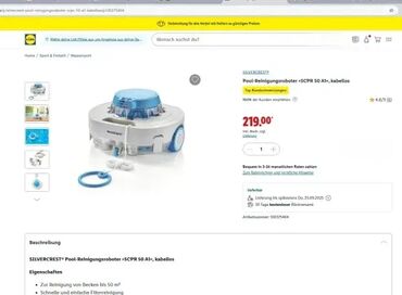 _Bezbrižan put do čistog bazena: COUNTRYSIDE® robot za čišćenje bazena „ CRPR 50 A1“ brine o podvodnim radovima – za bazene do 50 m² . Sa svojom robusnom konstrukcijom, efikasnim radom na baterije i jednostavnim rukovanjem, pouzdano obezbeđuje čisto dno bazena. Jednostavno ga umetnite, pokrenite – i opustite se._