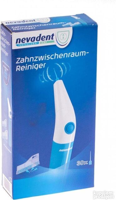 **Revolucionarni uređaj kompanije Nevadent - Germany** pomoći će vam da zaboravite na uobičajeni zubni konac i uklonite ostatke hrane iz međuzubnog prostora. Ovu funkciju obavlja električna čačkalica ili Nevadent konac. Čačkalica je kompaktne veličine, što je olakšava nošenje na put. Vodootporno kućište će zaštititiunutrašnje komponente od vlage i osigurati udoban postupak. Radi na zamenjivim AA baterijama. Nevadent električna čačkalica čisti u jednom načinu rada, a kružni pokreti će osigurati maksimalnouklanjanje ostataka hrane i onemogućiti razvoj bakterija.