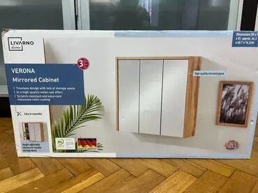 Linija: VeronaMaterijali: Telo, prednja strana: čestice panela; zadnji zid: HDF panel; ogledalo: stakloDimenzije: približno D 64,3 x V 60,7 x Š 16,2 cm