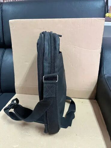 Crna torba sa dugim kaišem preko ramena i ručkama za nošenje u ruci