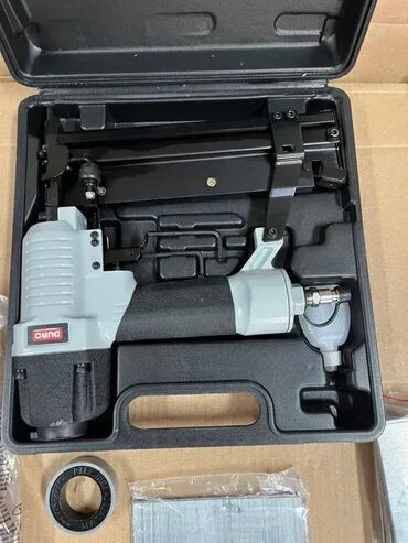 Kvalitetna i snažna pneumatska klamerica DURO SF5040E; **Potpuno NOVO, neotpakovano!** **DURO Walter Werkzeuge GmbH - Germany;** Za spajalice i eksere; **Za eksere 15-50mm i spajalice 16-40mm;** Radni pritisak: 4 - 7,5 baraPriključni navoj: 1/4"Opsežna dodatna oprema: Kofer, boca za ulje, 2x imbus ključ, 200x spajalice dužine 40 mm, 100x ekseri dužine 50 mm;