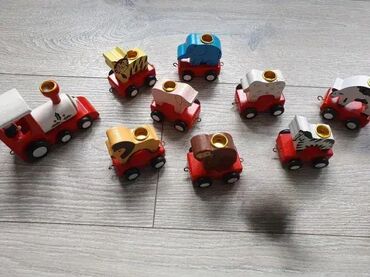 Pokupiti na licu mestaAKCIJA - NOVO #0384 Vozić za Rođendanske Svećice - Holz geburtstags-tischdekoration; Vozić od drveta sa vagonima od raznih životinja zavisno od broja godina! 10 prelepih igračaka od drveta sa kojima će se dete rado igrati; Dužina cele kompozicije oko 71 cm; NOVO, nekorišteno! Made in Germany;