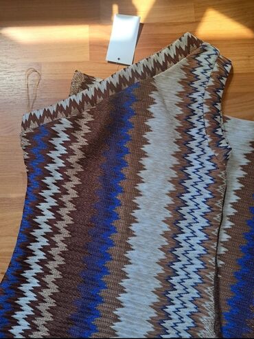 Žensko haljina/tunika u zlatno-braon boji sa sjajem. - Kroj: ravna silueta, dužina iznad kolena; 3/4 rukavi. - Izrez: širok okrugli izrez. - Materijal: rebrasti pleteni materijal sa diskretnim šlj...1 500 RSD