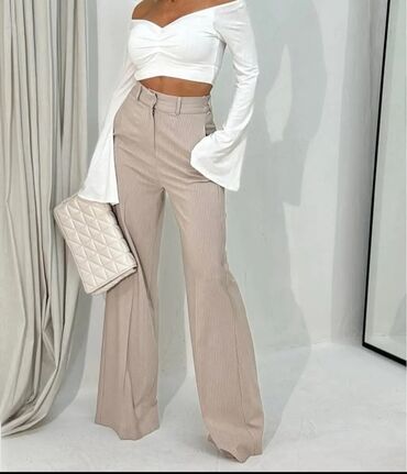 Bolndy zenske pantalone visoki struk, siroke ravne nogavice.Sa sitnim partama , elegantne mocne nove sa etiketom.