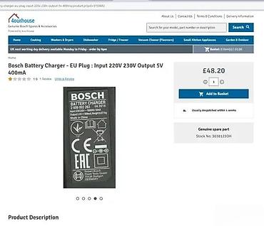 - Namena: napajanje/punjenje odgovarajućih Bosch uređaja i baterija koje zahtevaju 5 V / 400 mA preko okruglog DC priključka