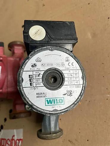 - Wilo RS 25/6-3 (PN10, IP44, 230 V, 50 Hz, 2 μF, Class F – TF110). Na kućištu označeno: „Samo zuji!“.
