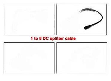 - Tip konektora: DC barrel (ženski ulaz na jednoj strani, 8 muških izlaza na drugoj)