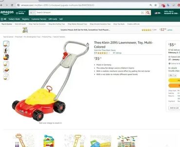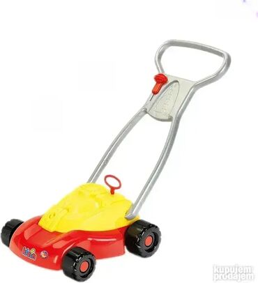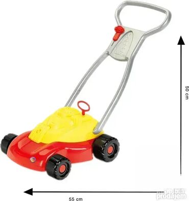 Dečija kosačica crvena; Sa realističnim mehaničkim zvučnim efektom povlačenjem crvenog startera; Sa crvenim klizačem za imitaciju različitih nivoa brzine; NOVO, neraspakovano! Klein - Made in Germany; Opis: Izuzetno čvrsta, stabilna i izdržljiva kosačica za decu koja se može sa lakoc´ om gurati preko zelenih površina. Radi potpuno bez baterija, ali i dalje proizvodi zvukove: klepetanje pri povlačenju startera i zveckanje pri okretanju točkova. Uz pomoć kosačice se naravno ne može kositi trava jer kosačica nema sečivo. Kao čista imitacija prave kosačice, trebalo bi da bude samo zabava, i verni saputnik deci koja na zanimljiv način trenira njihove motoričke sposobnosti. Pogodno je za decu iznad 18 meseci. Dimenzije: 55 cm x 30 cm x 17 cm