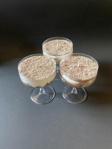 Mirišljava svećaUkrasne sveće u čašama – izgled tiramisua/čokoladnog deserta