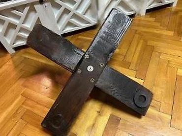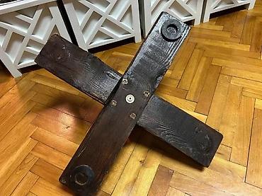 - Stabilna X-baza od masivnih drvenih letvi, ofarbana u tamnu nijansu