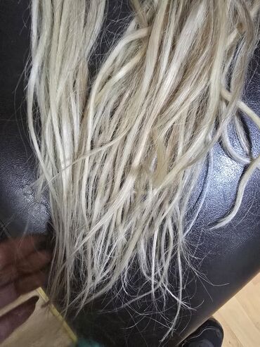 100 % prirodna kosa dužina oko 60 cm. 90ak pramenova. Pramenovi su deblji. Prethodno je radjena nadogradnja čvorovanjem. Sve kao sa svojom kosom farbanje uvijanje peglanje