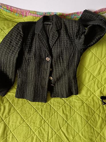 Elegantni strukirani sako, crne boje sa diskretnim uzorkom. Veličina 38, idealan za poslovni izgled ili svečane prilike.