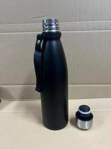 Diskretni dizajn u crnoj boji sa metalnim čepom, lako staje u torbu ili držač za flaše.