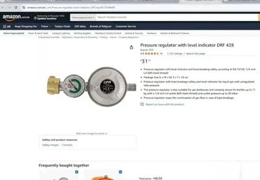 *** AKCIJA *** #2058 Plinski Regulator pritiska za Propan/Butan - GRIL MEISTER Germany; Za neregulisani ulazni pritisak i fiksni izlazni pritisak; Za plinske boce do 11 kg; Sa manometrom za nizak pritisak gasa; **Potpuno NOVO, neotpakovano!** **Made in Germany;** _**Tehnički podaci:**_ _Tip gasa: propan/bitan, ulazni pritisak: 1-16 bara, ulaz: priključak za male boce za boce do 11 kg EN 16129 - Dodatak G.12, izlaz: G ¼ " LH EN 16129 - aneks H.4, izlaz pritisak: 50 mbar, protok: 1,5 kg/h, dozvoljeni opseg radne temperature: -20 ° C do +50° C_ _Materijal: metal_ _Dimenzije: cca. D 144 x Š 65 x V 52 mm_ _Težina: pribl. 210 g_ **_Opis rada:_** _Regulator pritiska gasa sa integrisanom zaštitom od pucanja creva proverava da li kroz crevo na vašem gasnom roštilju protiče odgovarajuća količina gasa i automatski zaustavlja protok gasa čim se crevo za gas slomi ili napukne. Jednostavna instalacija: regulator gasa se lako montira između boce za gas i creva za gas._ _Zatim se dovod gasa automatski zatvara čim radni pritisak pređe nominalni protok za više od 10%. Univerzalno upotrebljiv: regulator pritiska gasa možete koristiti sa svim standardnim bocama za gas sa radnim pritiskom od 50 mbar prema nemačkom standardu za gas. Uključuje manometar: manometar sa indikatorom pritiska vam kontinuirano daje trenutni status i pokazuje vam, na primer, da li ima dovoljno gasa ili će vaša boca za gas uskoro biti prazna i treba je uskoro zameniti. Jasan kod boja:_ _Zelena znači da je pritisak gasa normalan, tako da ne morate ništa da radite._ _Žuta boja znači da bi trebalo uskoro da promenite bocu za gas i_ _Crvena boja označava da uređaj za gas mora odmah da se isključi._ Informacije **** _Plaćanje možete izvršiti pouzećem ili uplatom pre slanja na tekući račun.__Uplatom pre slanja izbegavate poštarinu za povrat novca preko kurirske službe.__U slučaju da ste iz bilo kog razloga nezadovoljni proizvodom možete ga vratiti u roku od 15 dana i novac ćete dobiti nazad.__Rizik i troškovi slanja idu na teret kupca (kod prijema i kod povrata proizvoda)._****