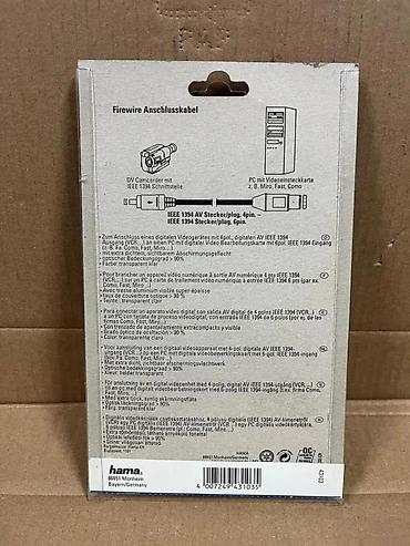 - Obeležja na pakovanju: “DV Verbindungskabel IEEE 1394 transparent klar / FireWire Anschlusskabel / Connecting cable”
