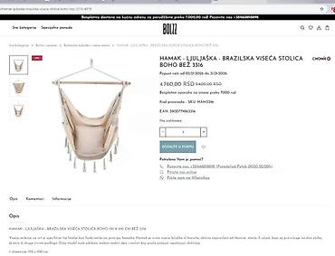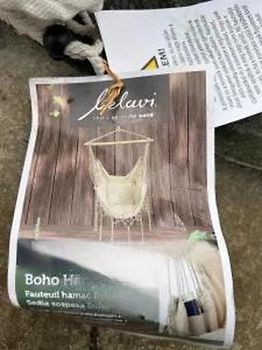 - Tip: brazilska viseća stolica (hanging chair) sa boho resama i makrame detaljima
