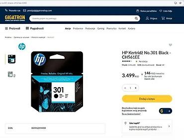 - Originalni HP ink kertridž, crna boja