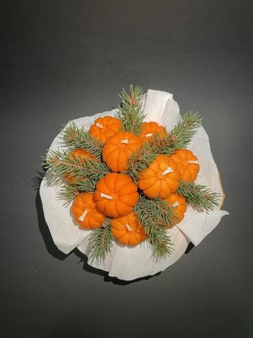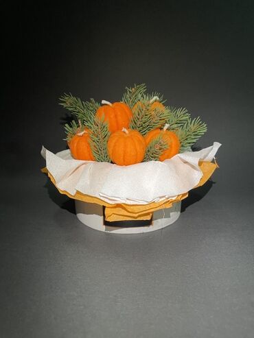 - Kombinacija jarkonarandžastih mini bundeva i svežih/realističnih zimzelenih (jelkinih) grančica za topao, jesenji izgled.