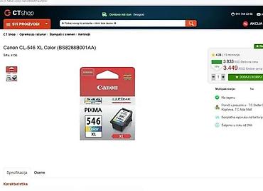 - Trobojni kolor – cijan, magenta, žuta (CL-546XL)