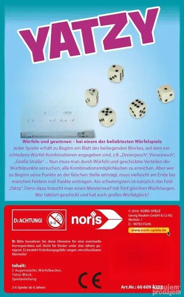 NovoKomplet Igra za JAMB; Za 2 do 6 igrača; Sa 5 kockica; Za 8+ godina; Noris - Made in Germany; Potpuno NOVO, neotpakovano;