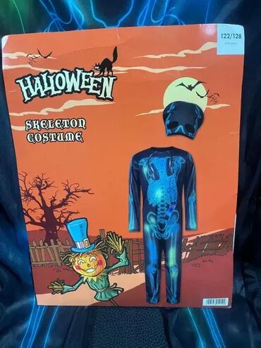 Kostim za Maskenbal - SKELET; Kostim se sastoji od kombinezona i kape; Pozadi zatvaranje sa čičak trakom; Materijal: 100% poliester; Dostupna veličina: 110/116 (uzrast od 4 do 6 godina); 122/128 (uzrast od 6 do 8 godina); NOVO, neotpakovano!