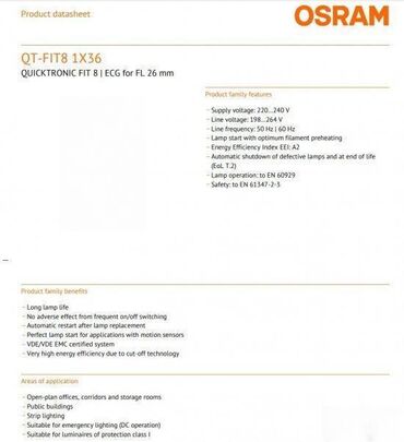 Pokupiti na licu mestaKvalitetne elektronske prigušnice za fluo cevi; Rad sa ili bez startera; OSRAM QUICKTRONIC fit T8; 1x36W; Detaljne specifikacije su date na slikama; NOVO!Popust na količinu;