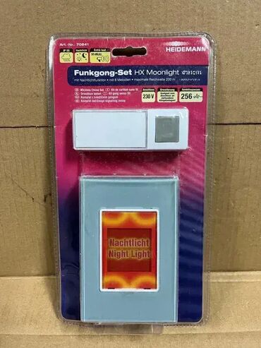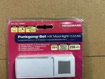 Kvalitetno bežično zvono; Domet do 200 metara; Model: 70841 HX Moonlight; Potpuno NOVO, neotpakovano! Heidemann - Made in Germany; Opis: 8 melodija koje se mogu izabratiKontinuirana kontrola jačine zvuka od 70-95 dB(A)Maks. domet: 200 mFunkcija noćnog svetla sa automatskom funkcijom sumrakaPogodno za povezivanje sa postojećim sistemima zvona na vratimaBežični set zvona za vrata HX „ Moonlight“ kompanije Heidemann sastoji se od predajnika sa natpisnom pločicom i LED diodama, kao i prijemnika sa priključkom za električnu utičnicu. Predajnik je zaštićen od mlazeva vode i stoga se može bez problema instalirati na otvorenom. Prijemnik, koji ima funkciju noćnog svetla, pogodan je samo za unutrašnju montažu. Signal poziva može biti trepćuća LED dioda, ekstra glasno zvonjenje do 95 dB(A) ili kombinacija oba.
