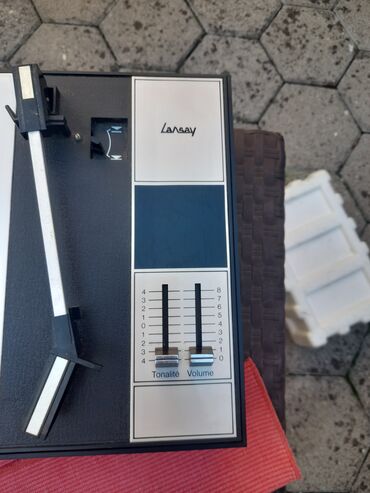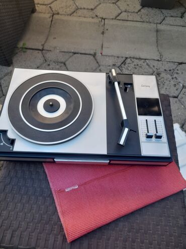 - Rukovanje: ručna ručica za reprodukciju ploča, prekidač za izbor brzina (označene pozicije 45/33 o/min)