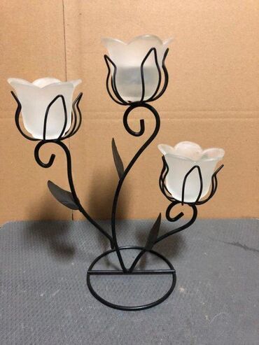 Pokupiti na licu mestaPredivan svećanjak u obliku tri ruže; Materijal: metal - staklo; NOVO, nekorišteno!