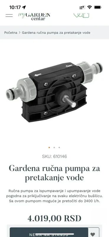 Pumpa za pretakanje tečnosti - GARDENA Germany: Pogon na običnu bušilicu ili aku-bušilicu; Kapacitet: 2400 l/h; Pogodno za pretakanje: vode, za čamac (kampovanje i sl. ) za akvarijum i sl. rasola kod kiselog kupusa, vina, rakkije, GARDENA - Made in Germany; Kao NOVO, nekorišteno! Ručna pumpa za ispumpavanje i upumpavanje vode pogodna za priključivanje na svaku električnu bušilicu. Sa ovom pumpom moguće je pretočiti do 2400 l/h. Jednostavno se montira na električnu bušilicu - pogonska osovina odgovara steznoj glavi bilo koje standardne električne bušilice (Ø 8 mm). Sa originalnim GARDENA priključcima, odmah je spremna za rad.