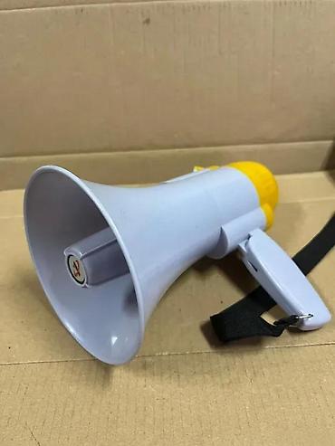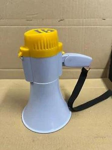 - Kompaktan ručni megafon sa remenom za nošenje oko ruke.