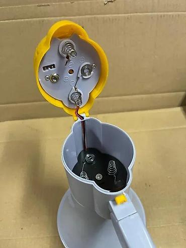 - Telo od plastike, sivi levak i žuti gornji deo sa ventilacionim otvorima.