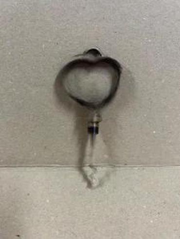 - Dizajn: drška u obliku srca sa reljefnim motivima (grozd i ukrasne vitice); prsten/oko na vrhu za kačenje na kuku ili privezak