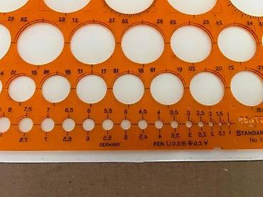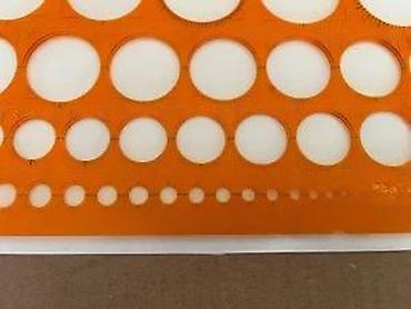 Precizan, čitko obeležen šablon koji omogućava brzo i tačno iscrtavanje velikog spektra kružnih otvora i radijusa.