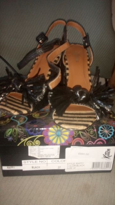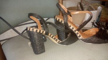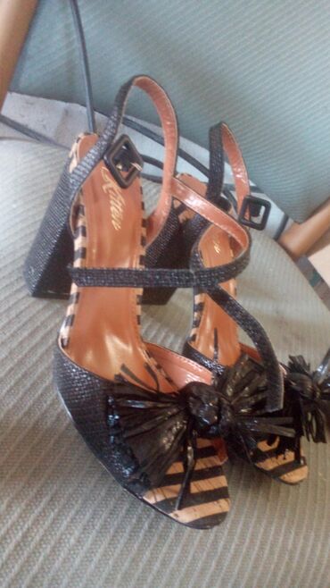 Ženske sandale sa visokom štiklom i otvorenim prstima. - Brend: Keanli (otisak na ulošku) - Materijal uloška: prava koža (oznaka “Vera Pelle”) - Dizajn: kombinacija zebra pruga (crno‑bele) i detal...