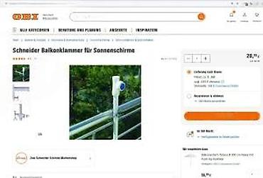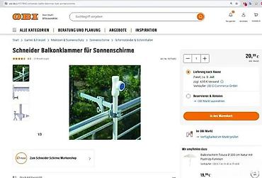 Model prikazan na fotografijama: Schneider Balkonklammer für Sonnenschirme. Cena prikazana na ekranu: 20,99 €.