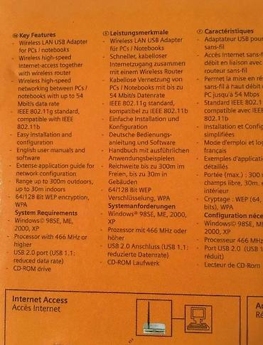 - Sadržaj pakovanja: Gigaset USB Adapter 54 sa antenom, USB kabl, uputstvo/priručnik, originalno pakovanje