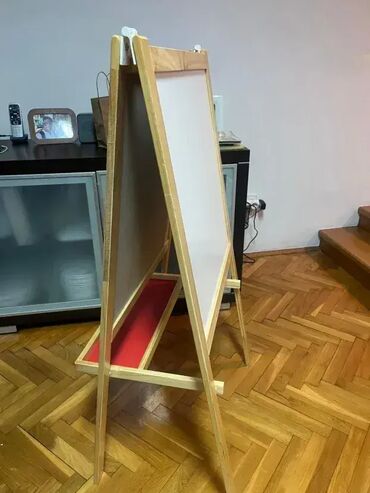 Slikarsko postolje za decu - IKEA; Crna strana za pisanje kredom; Bela strana za pisanje folmasterima; Ukupne dimenzije: ŠxV = 62x118cm; Dimenzije table za pisanje: 54x57cm; EKSTRA stanje, bukvalno kao NOVO! Opis proizvoda:Stvaranje i kreativnost čine dete spokojnim i fokusiranim, a to je posebno lepo nakon dana u školi i u raznim aktivnostima. Ovo slikarsko postolje s jedne strane ima crnu, a s druge belu tablu i savršeno je za stvaranje i učenje. Pogodno i za manju decu, pošto je prostor za crtanje veliki i blizu podu. Ručni rad podstiče sposobnost deteta za učenje i finu motoriku. U posudu postolja, koje se takođe i uklanja, možeš odložiti flomastere i krede za tablu, kao i ostale sitnice. Lako se sastavlja, premešta i sklanja kad kreativnosti zatreba pauza. Idealan poklon za decu koja vole umetnost i rukotvorine;