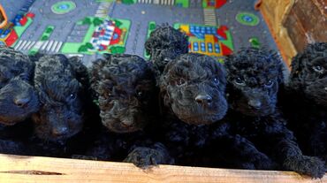 Štenci crnog, kovrdžavog krzna – nežni i razigrani mališani. Na fotografijama su štenad sa gustom, mekom dlakom koja minimalno linja i lako se održava redovnim češljanjem. Crne su boje sa mogućim malim belim pramenom na grudima.