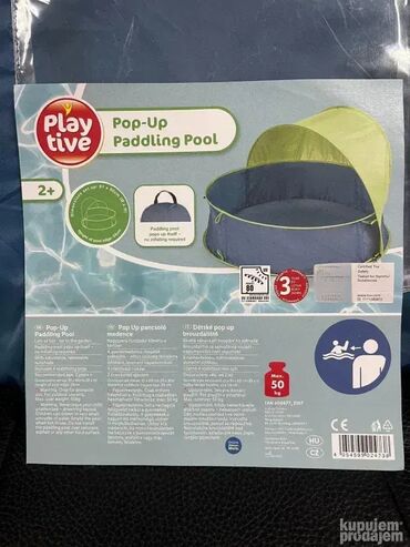 *** SUPER AKCIJA *** #2448 Pop Up Bazen za decu - Play Tive; Potpuno NOVO, neotpakovano! Opis proizvoda: ✅Bazen se sam otvara - bez naduvavanja ✅ sa podesivim krovom koji se može skinuti ✅ 4 stabilizirajuće šipke uključene ✅ Veliko zadovoljstvo kupanja u bašti ✅ Preporuke za uzrast: od 2 godine Materijal: ✅ presvučeni poliester, opružna čelična žica, PVC, ABS Dimenzije: ✅ cca. 91 x 60 cm (Ø x V) Vaga: ✅ cca. 958 g Informacije **** _Plaćanje možete izvršiti pouzećem ili uplatom pre slanja na tekući račun.__Uplatom pre slanja izbegavate poštarinu za povrat novca preko kurirske službe.__U slučaju da ste iz bilo kog razloga nezadovoljni proizvodom možete ga vratiti u roku od 15 dana i novac ćete dobiti nazad.__Rizik i troškovi slanja idu na teret kupca (kod prijema i kod povrata proizvoda)._****